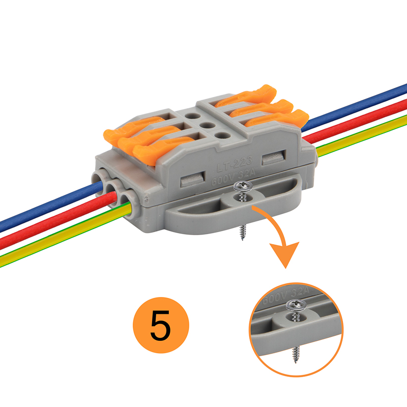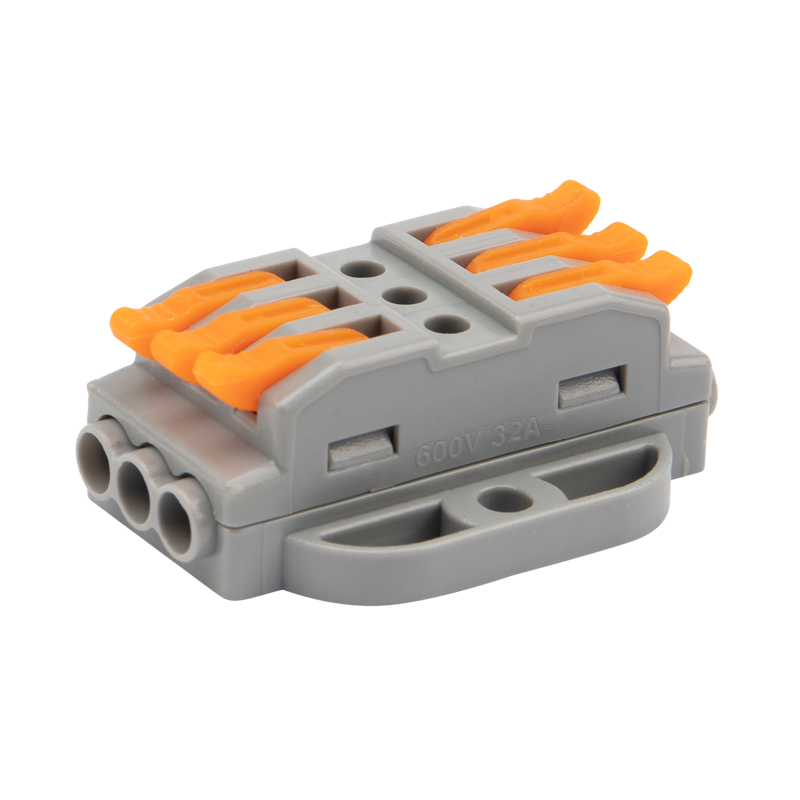 Многоразовые трехпроводные клеммы REXANT с монтажной площадкой предназначены для соединения медных одножильных и многожильных зачищенных проводников тонкого сечения. Контакт осуществляется путем зажима проводника пластиной. Конструкция предотвращает случайное размыкание контакта. Специальное технологическое отверстие на корпусе клеммы предназначено для проверки соединения тестером-пробником или щупом мультиметра. Корпус из пластика делает контакт изолированным.