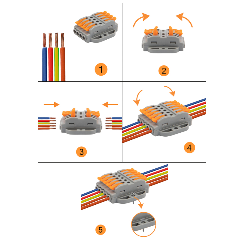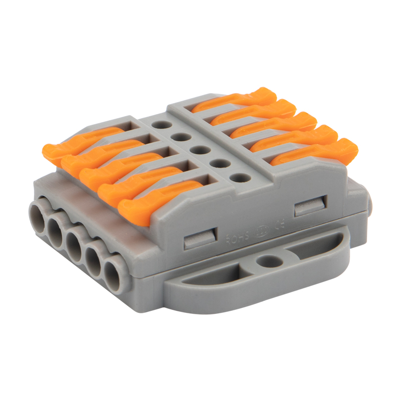 Многоразовые пятипроводные клеммы REXANT с монтажной площадкой предназначены для соединения медных одножильных и многожильных зачищенных проводников тонкого сечения. Контакт осуществляется путем зажима проводника пластиной. Конструкция предотвращает случайное размыкание контакта. Специальное технологическое отверстие на корпусе клеммы предназначено для проверки соединения тестером-пробником или щупом мультиметра. Корпус из пластика делает контакт изолированным.