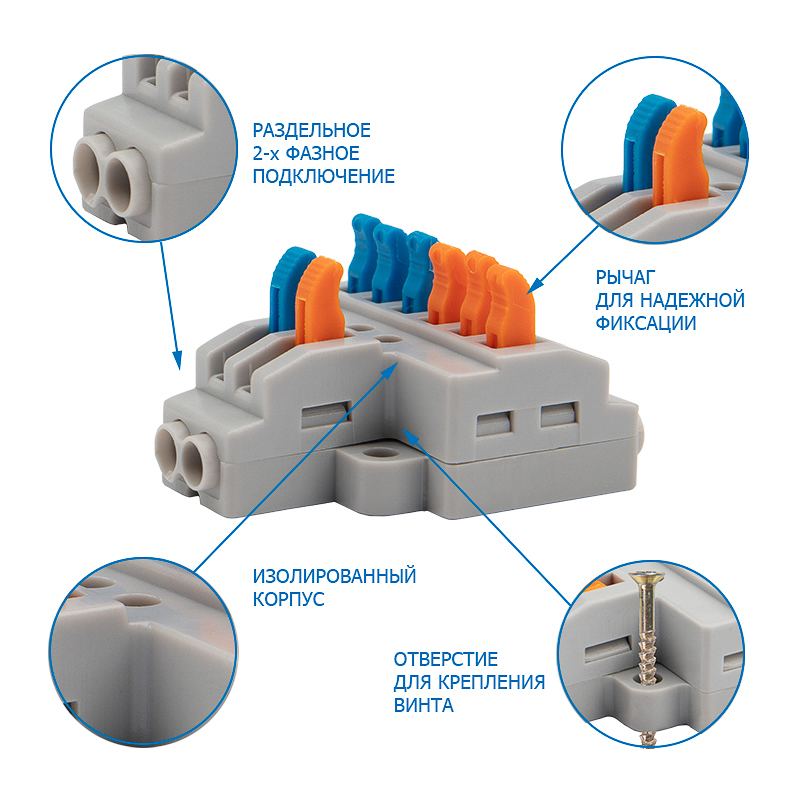 Многоразовые соединительные клеммы REXANT предназначены для соединения медных одножильных и многожильных зачищенных проводников тонкого сечения.