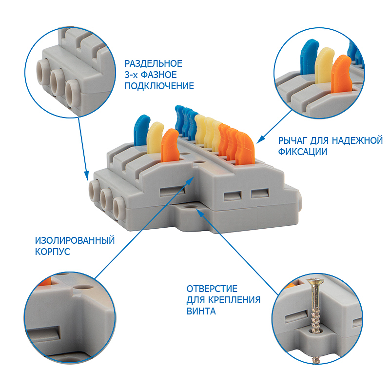Многоразовые соединительные клеммы REXANT предназначены для соединения медных одножильных и многожильных зачищенных проводников тонкого сечения.