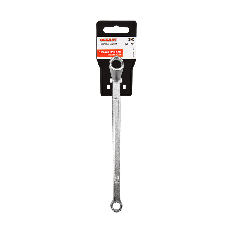 Ключ накидной коленчатый 10х13мм, цинк REXANT