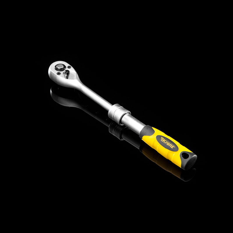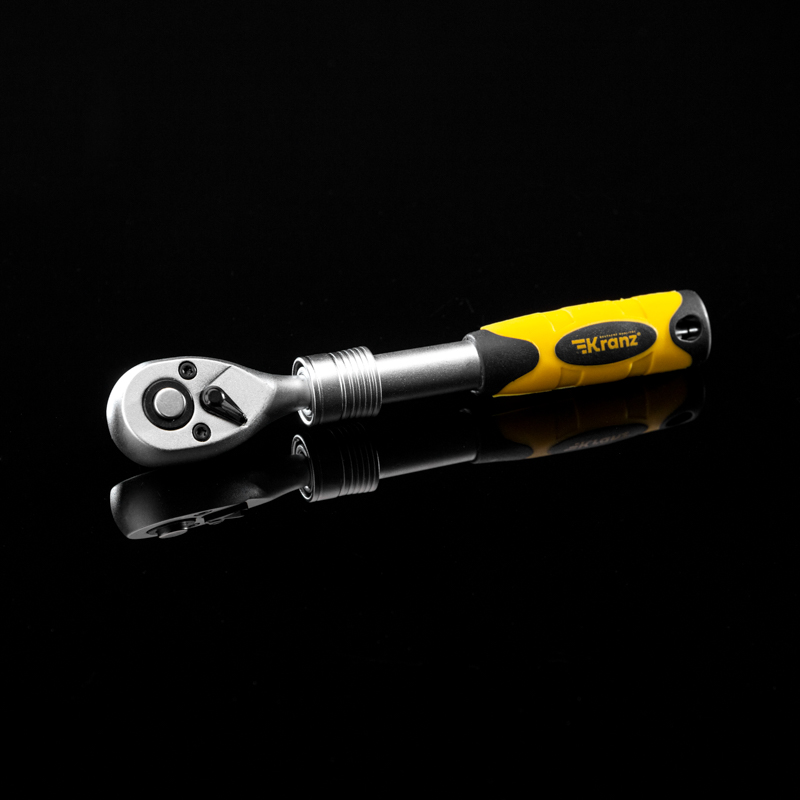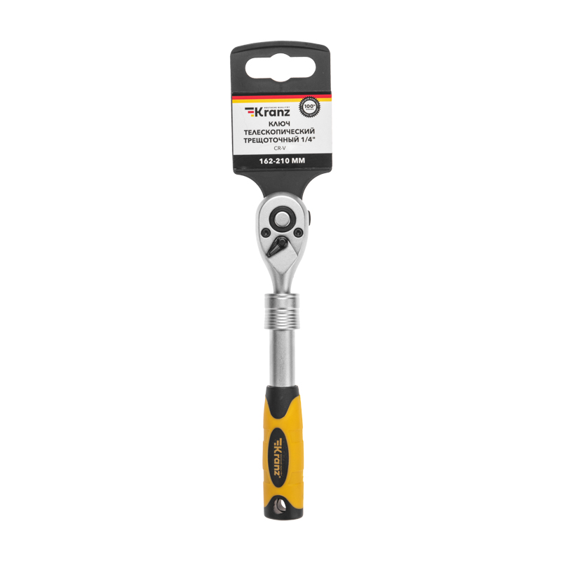 Телескопический хромированный трещоточный ключ KRANZ предназначен для монтажных работ с резьбовыми соединениями.