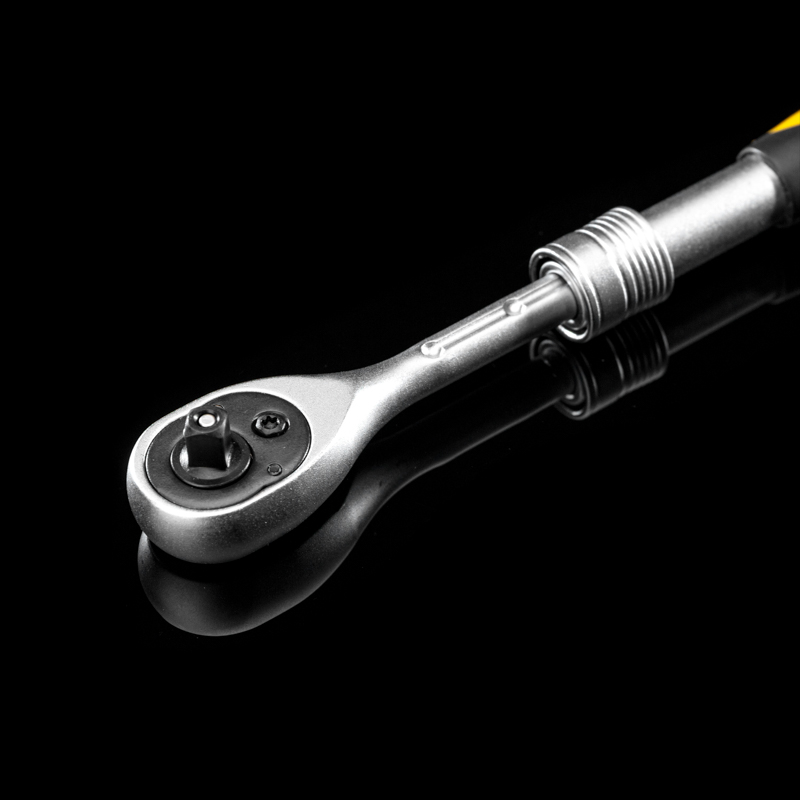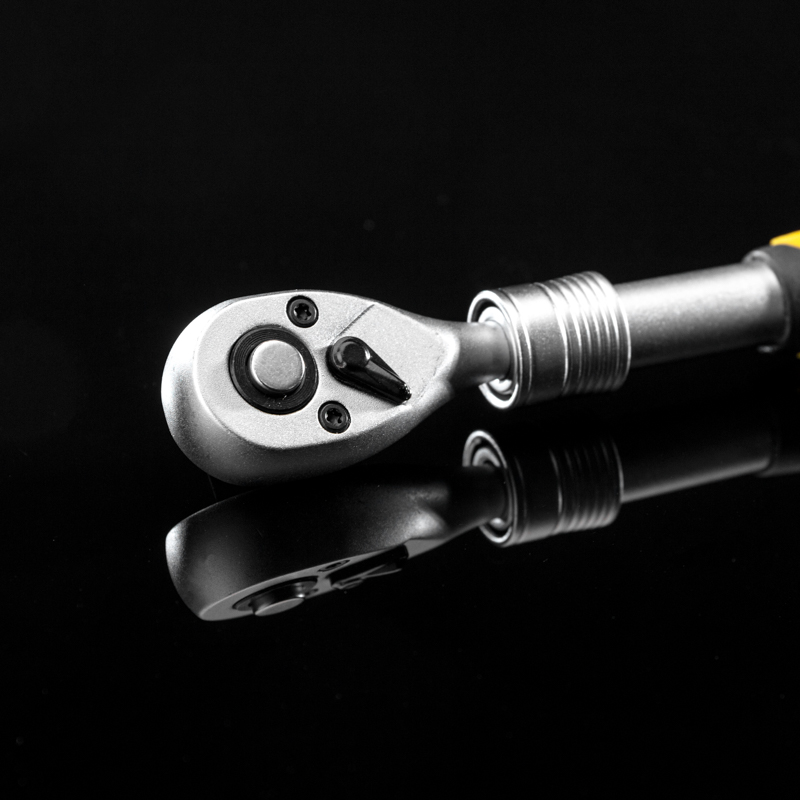 Инструмент оснащен присоединительным квадратом размером 1/4 дюйма, что позволяет подключать различные насадки и головки в зависимости от потребности.