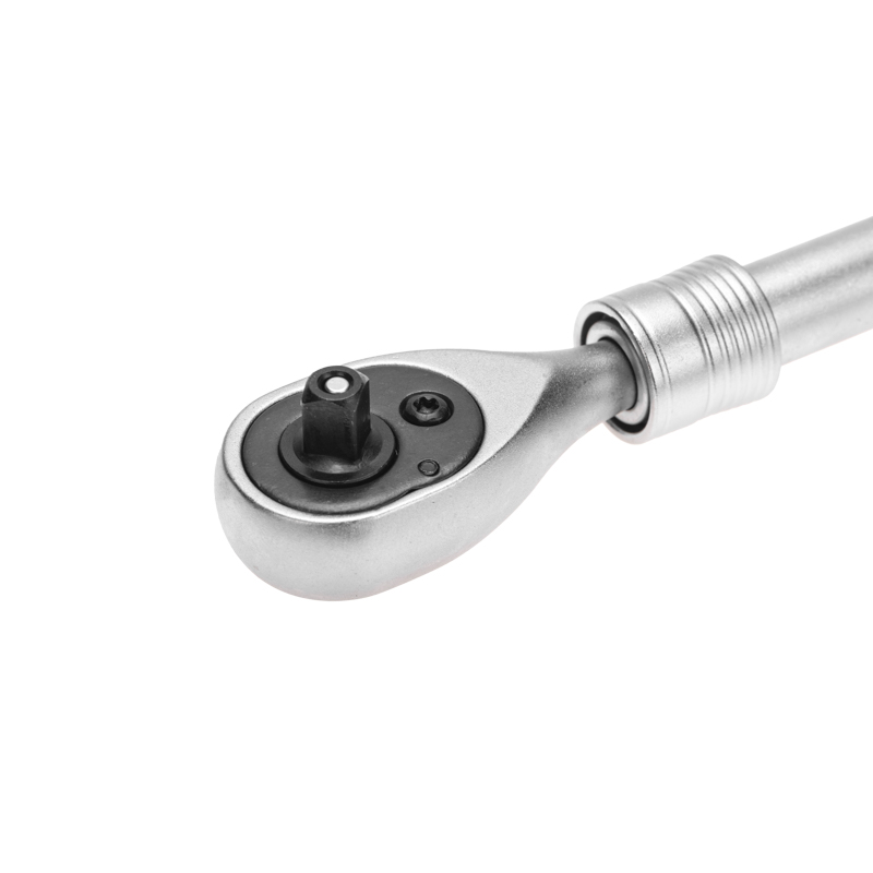 Телескопическая рукоятка обеспечивает легкую регулировку длины в диапазоне от 162 до 210 мм, что делает ключ удобным для работы в разных условиях. Механизм фиксации гарантирует надежную блокировку рукоятки на требуемой длине.