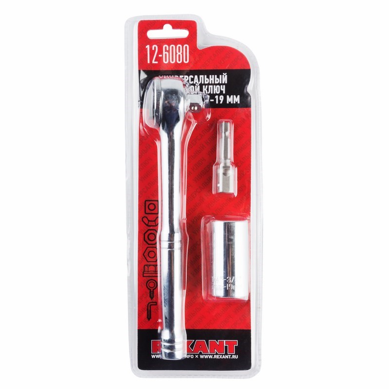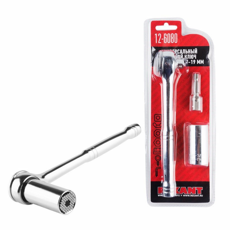 Универсальный торцевой ключ с трещоткой REXANT широко применяется в автомастерских и гаражах при проведении слесарных работ.