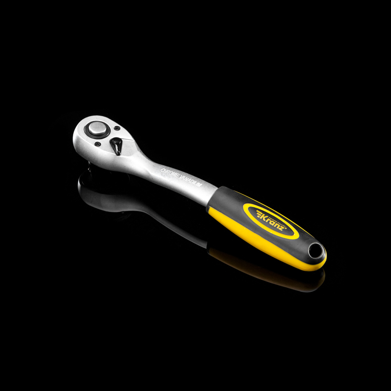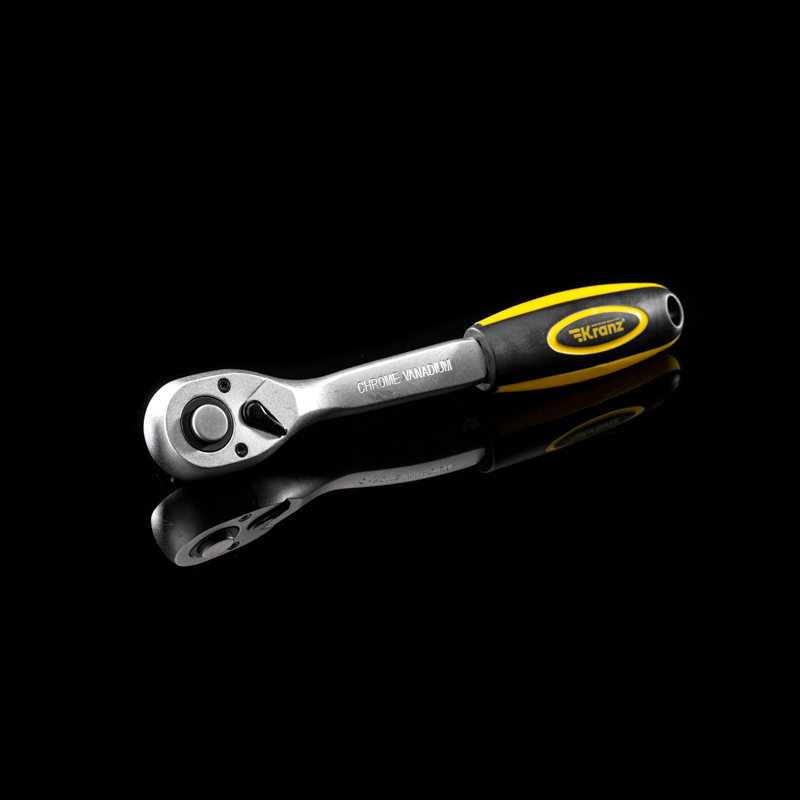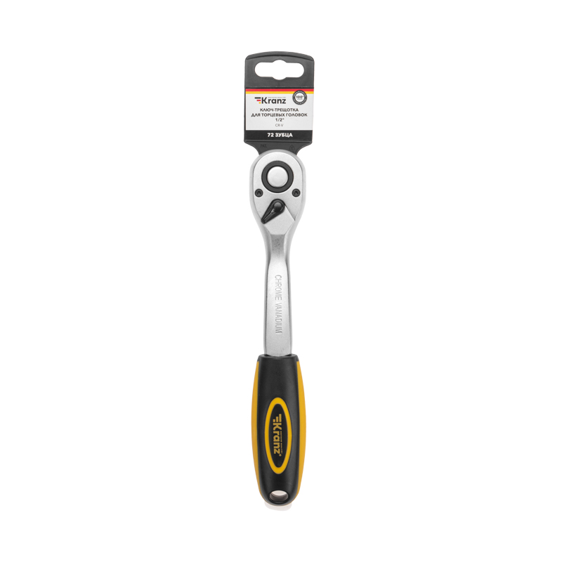 Ключ-трещотка для торцовых головок KRANZ предназначен для закручивания и раскручивания резьбовых соединений. Инструмент обладает высоким рабочим ресурсом. Оснащен цельнометаллическим корпусом с хромированной поверхностью.