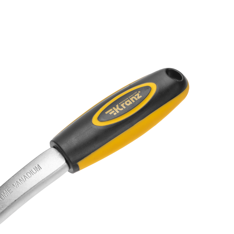 Изогнутая форма рукоятки создает дополнительное удобство при закручивании и раскручивании соединений, находящихся в труднодоступных местах.