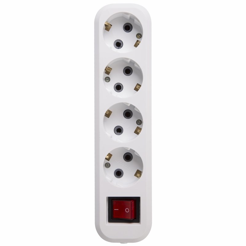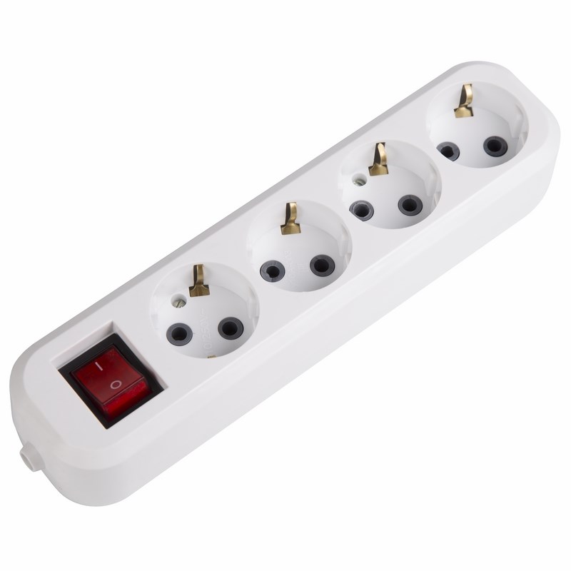 Колодка 4 гнезда с кнопкой c заземлением REXANT