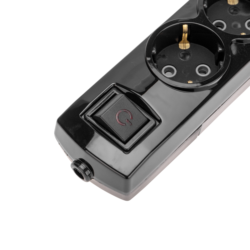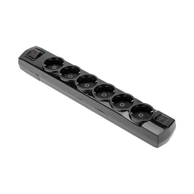 Колодка PREMIUM 6 гнезд, с/з, с выключателем, черный REXANT
