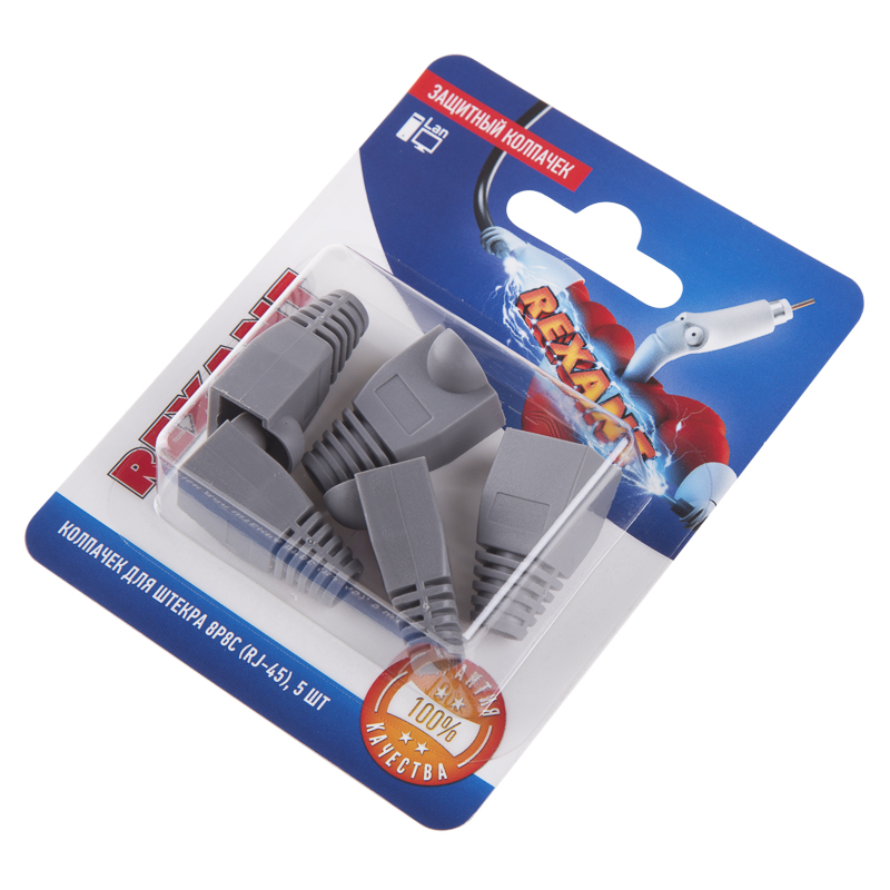 Колпачок RJ-45 REXANT серого цвета предназначен для дополнительной защиты места соединения разъема RJ-45 (8P8C) и информационного кабеля при построении телефонных и компьютерных сетей.