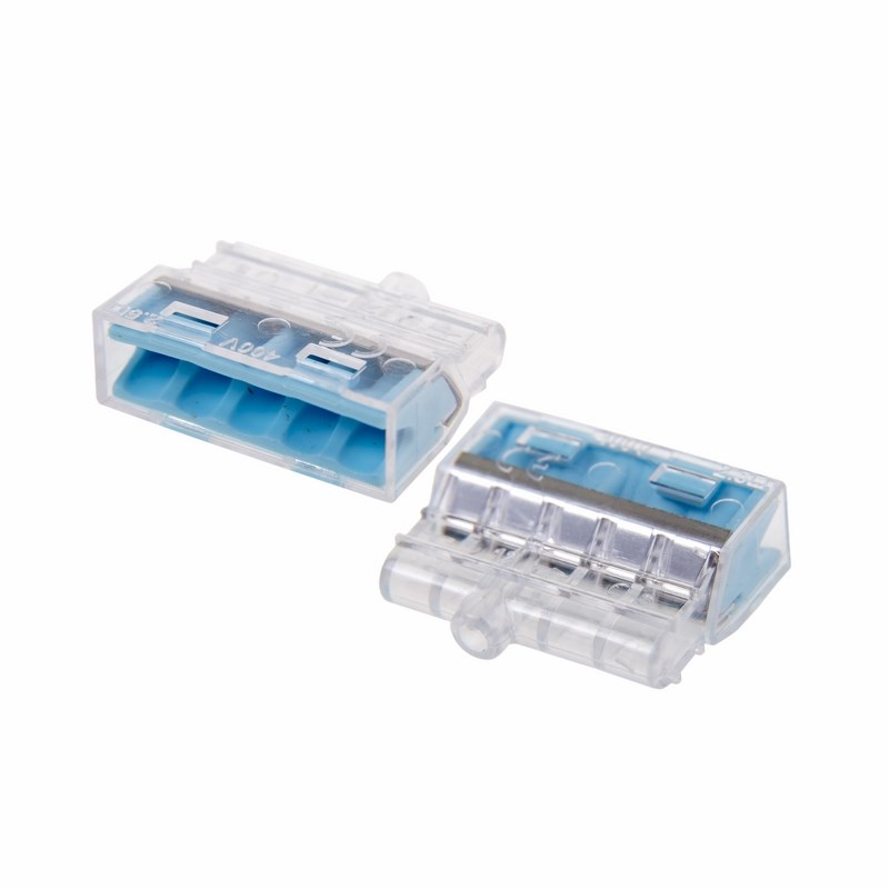 Компактная универсальная 5-проводная клемма REXANT в прозрачном корпусе. Благодаря применению новых технологий удалось разместить функционал клеммы в еще более компактном и удобном корпусе, который экономит до 50 % пространства в монтажной зоне. Теперь не нужно открывать и закрывать различные рычажки в клеммах, конструкция контактной группы обеспечивает надежное крепление провода. Такая клемма прекрасно подойдет для новейших светильников и осветительных систем.