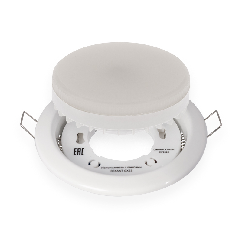 Комплект REXANT, состоящий из лампы и светильника GX53, предназначен для освещения бытовых и административных помещений в подвесных и натяжных потолках.
