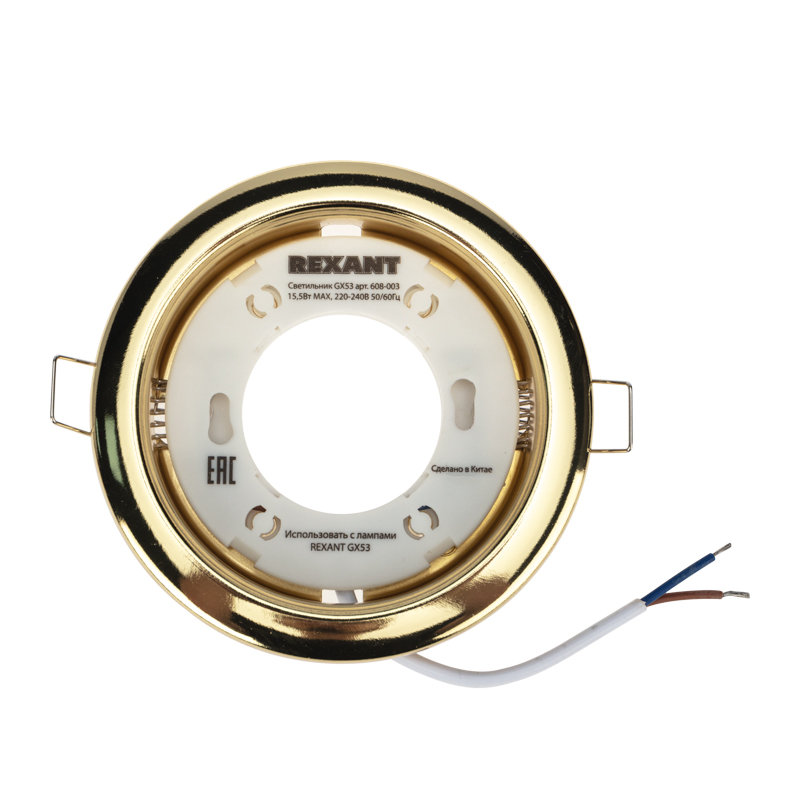 Комплект лампы и светильника GX53 «ЯРКИЙ ТЕПЛЫЙ ЗОЛОТОЙ» лампа 15,5 Вт теплого белого цвета свечения 2700 K и светильник под лампу GX53 золотистого цвета (604-067+608-003) REXANT