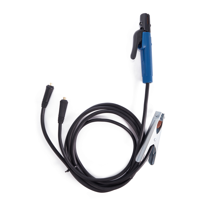 В комплект входят кабель с электрододержателем и кабель с клеммой для подключения к массе, до 200 А. Кабель – КГ 1х16, изготовлен по ГОСТ. Длина кабеля с электрододержателем – 5 м. Длина кабеля с клеммой – 5 м. Вилка кабельная – СКР 10-25.