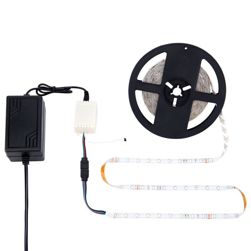 Комплект светодиодной ленты с блоком питания, преобразующим напряжение, и RGB-контроллером станет универсальным решением для подсветки различных поверхностей: мебели, кухни, зоны рабочего стола и тому подобное. Гибкость и прочность ленты способствует легкому монтажу, а дополнительная изоляция РСВ-платы защищает изделие от механических повреждений и влаги.