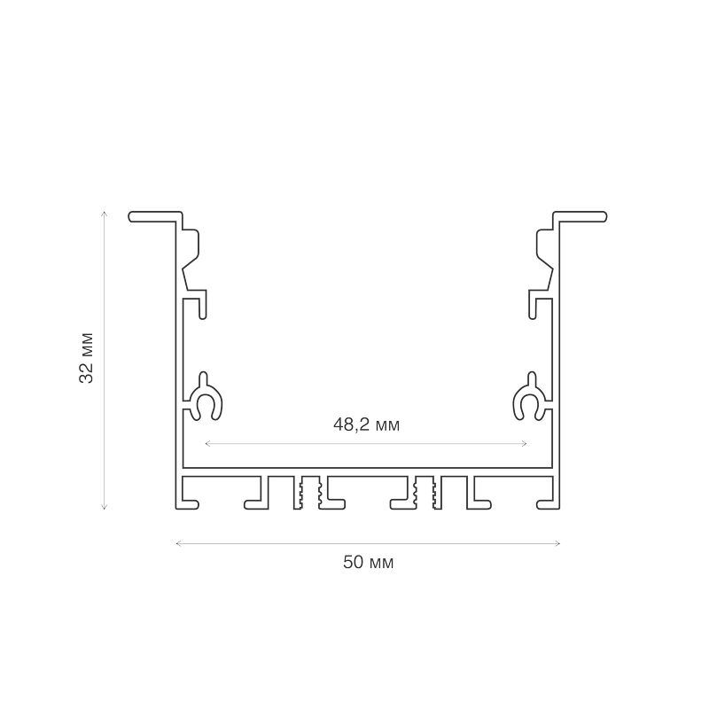 Съемный пластиковый экран обеспечивает равномерное рассеивание светового излучения и не искажает передаваемые оттенки свечения. Размер профиля (ДхШхВ) – 2000х62х32 мм. Размер монтажный (ДхШхВ) – 2000х50х32 мм. Монтажная ширина для ленты: 47,5 мм. Цвет – серебристый. Способ установки – врезной.