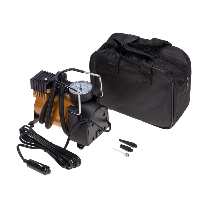 Автомобильный металлический компрессор в прикуриватель используется для подкачки автомобильных шин.