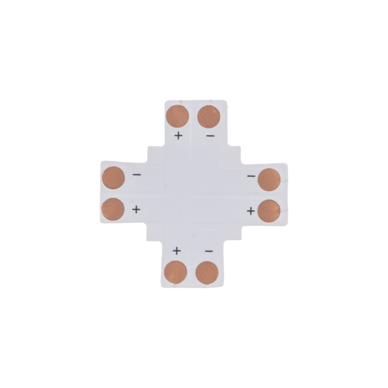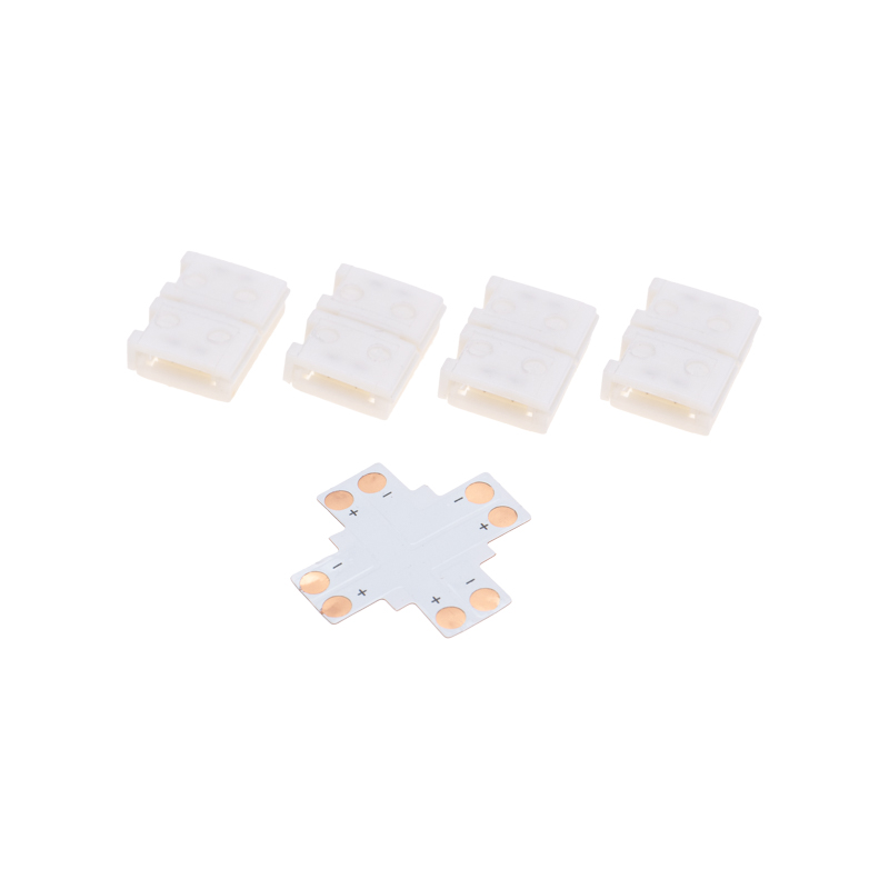 X-образный коннектор – это устройство, предназначенное для соединения четырех отрезков светодиодных лент SMD шириной 8 мм.