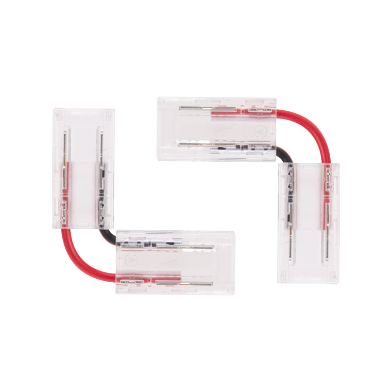 L-образный коннектор – это устройство, предназначенное для соединения нескольких отрезков светодиодных лент COB шириной 8 мм.