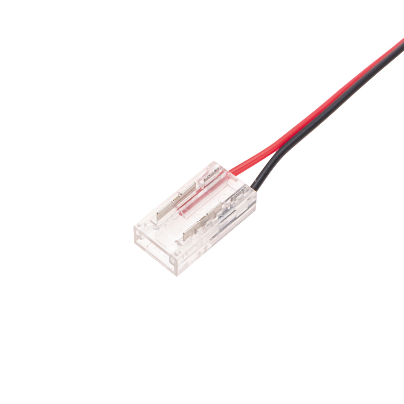Коннектор – это устройство, предназначенное для обеспечения электрического соединения между блоком питания и одноцветной светодиодной лентой COB шириной 8 мм.