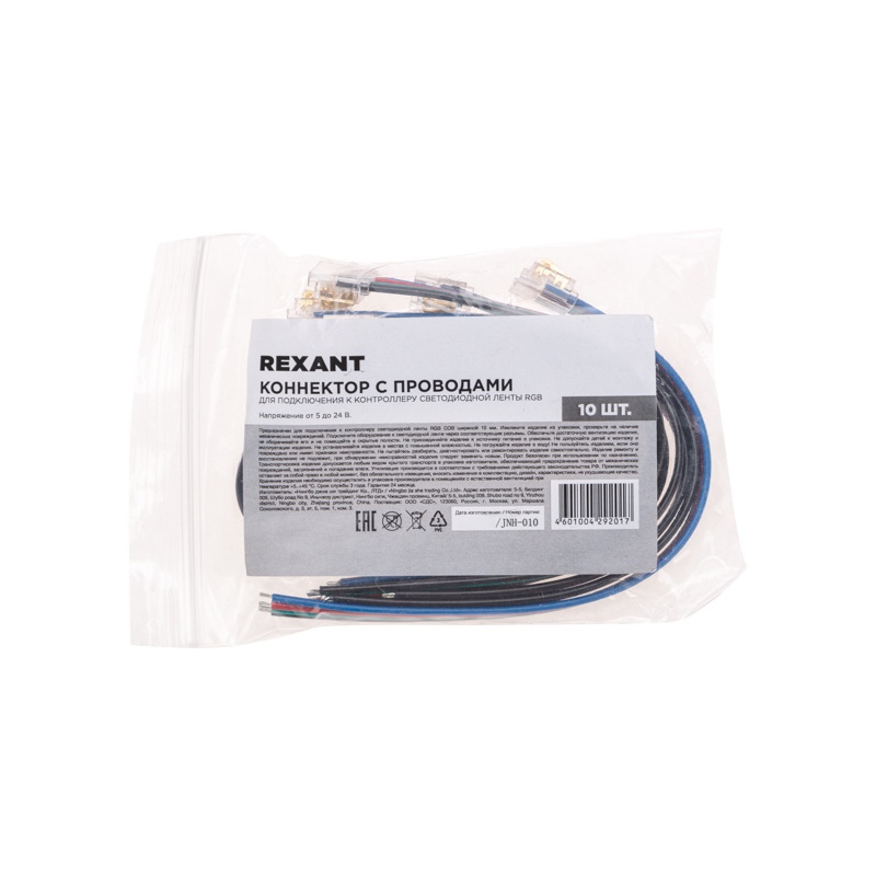 Коннектор – это устройство, предназначенное для подключения к контроллеру одноцветной светодиодной ленты RGB COB шириной 10 мм.