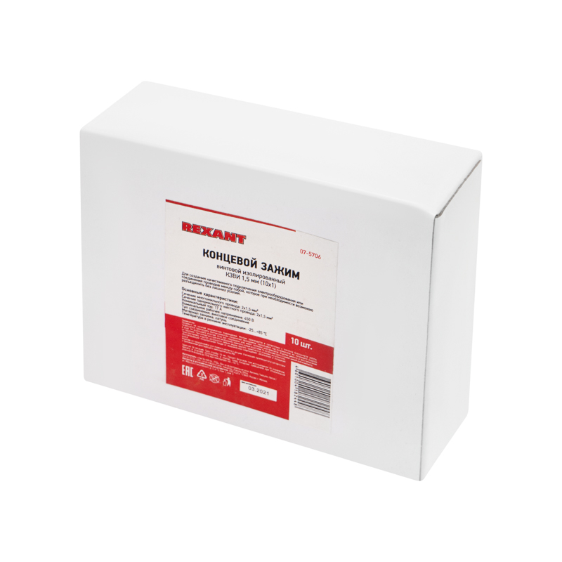 Концевые винтовые изолированные зажимы REXANT предназначены для электрического и механического соединения медных или алюминиевых проводников сечением 1,5 мм² в электрической цепи напряжением до 450 В. В каждом зажиме можно зафиксировать по 2 проводника номинального сечения. Применяются для разводки силовых цепей в распределительных коробках и кабельных каналах. Материал контакта – латунь. Материал изолятора – поликарбонат. Материал винтов – оцинкованная сталь.