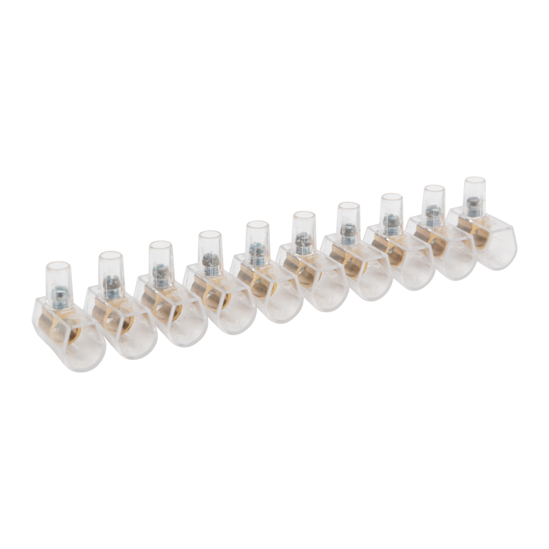 Концевые винтовые изолированные зажимы REXANT предназначены для электрического и механического соединения медных или алюминиевых проводников сечением от 2,5 до 6 мм² в электрической цепи напряжением до 450 В. В каждом зажиме можно зафиксировать по 2 проводника номинального сечения. Применяются для разводки силовых цепей в распределительных коробках и кабельных каналах. Материал контакта – латунь. Материал изолятора – поликарбонат. Материал винтов – оцинкованная сталь.