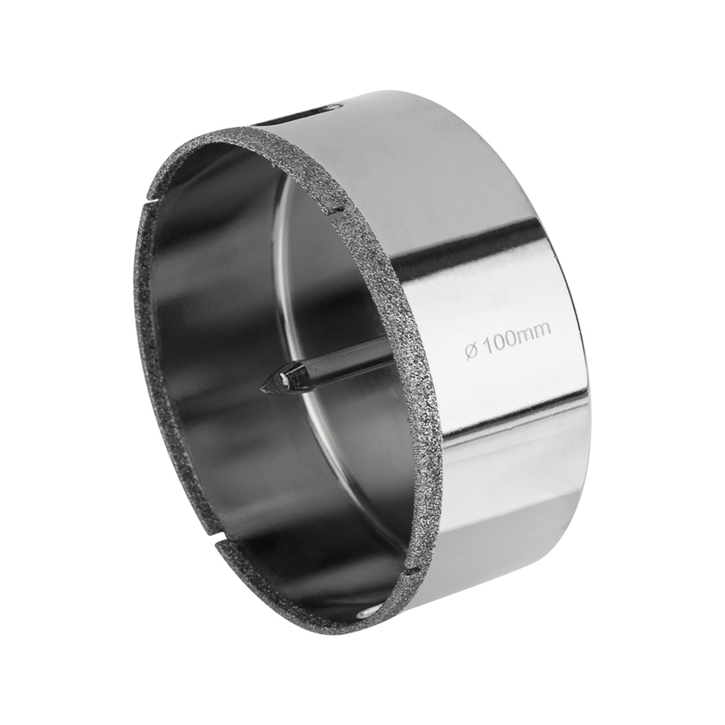 Алмазная коронка диаметром 100 мм используется при сверлении керамогранита, керамики, стекла. Наличие центровочного сверла обеспечивает точное позиционирование коронки на поверхности и помогает избежать смещения во время работ.