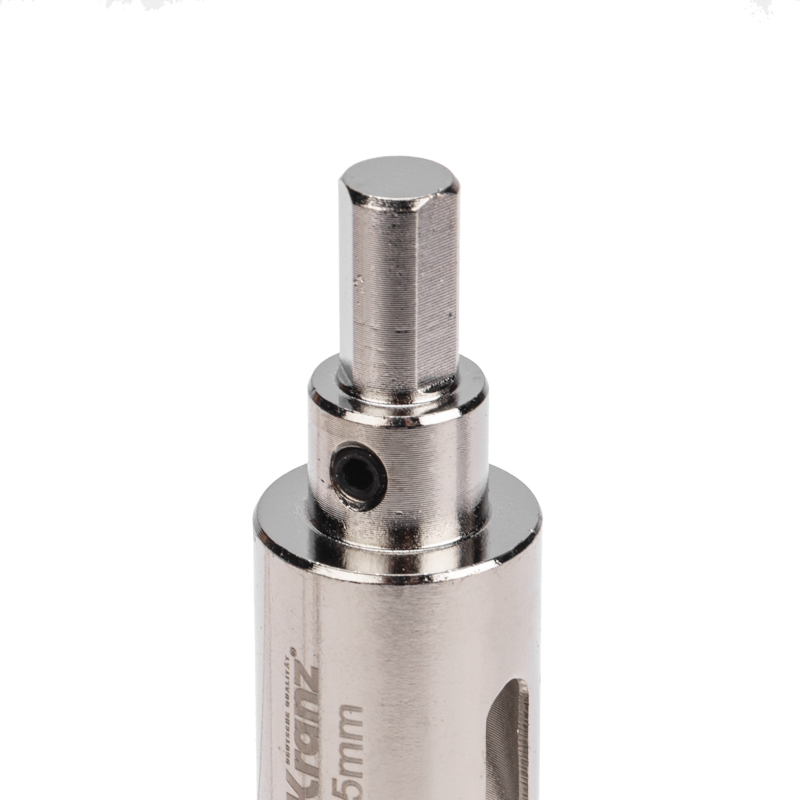 Алмазная коронка диаметром 25 мм используется при сверлении керамогранита, керамики, стекла. Наличие центровочного сверла обеспечивает точное позиционирование коронки на поверхности и помогает избежать смещения во время работ.