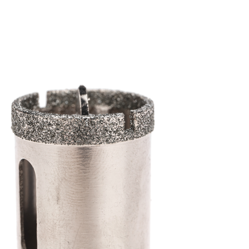 Покрытие алмазной коронки выполнено гальваническим способом в два слоя, что обеспечивает эффективное сверление и продолжительный рабочий ресурс инструмента. Равномерное распределение алмазов по режущей кромке гарантирует аккуратное сверление материала без трещин и сколов.
