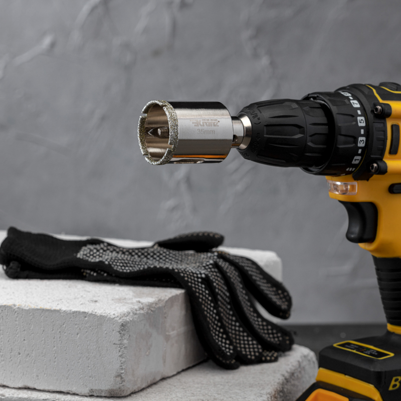 Алмазная коронка диаметром 38 мм используется при сверлении керамогранита, керамики, стекла. Наличие центровочного сверла обеспечивает точное позиционирование коронки на поверхности и помогает избежать смещения во время работ.