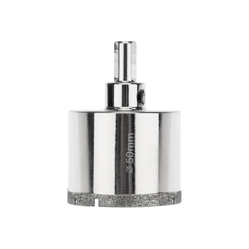 Алмазная коронка диаметром 50 мм используется при сверлении керамогранита, керамики, стекла. Наличие центровочного сверла обеспечивает точное позиционирование коронки на поверхности и помогает избежать смещения во время работ.