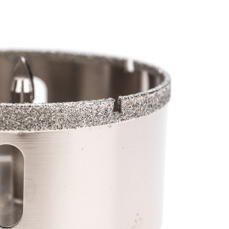 Покрытие алмазной коронки выполнено гальваническим способом в два слоя, что обеспечивает эффективное сверление и продолжительный рабочий ресурс инструмента. Равномерное распределение алмазов по режущей кромке гарантирует аккуратное сверление материала без трещин и сколов.