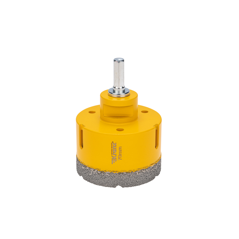 Изделие предназначено для работы в режиме безударного сверления. Применение технологии высокотемпературного вакуумного спекания алмазов позволяет сверлить самые твердые материалы без применения водяного охлаждения.