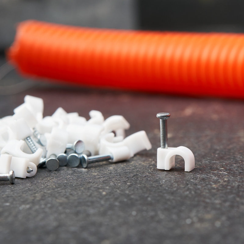 Круглый крепеж 4 мм с гвоздем предназначен для фиксации круглого кабеля к деревянной поверхности. Такой крепеж будет особенно полезен для использования на даче или в частном деревянном доме.