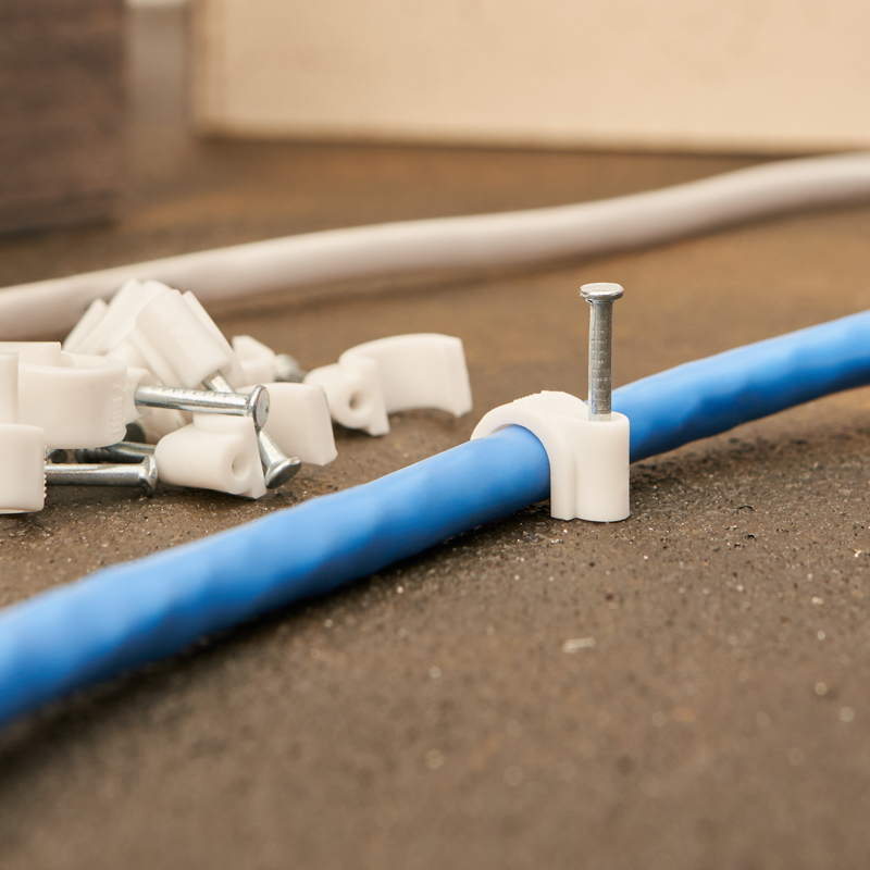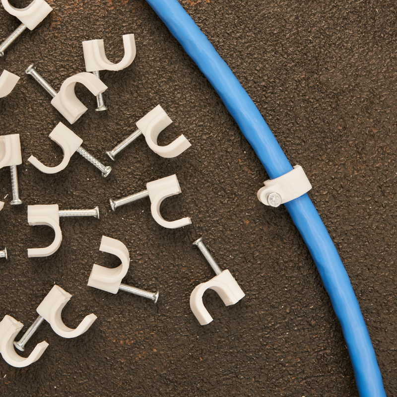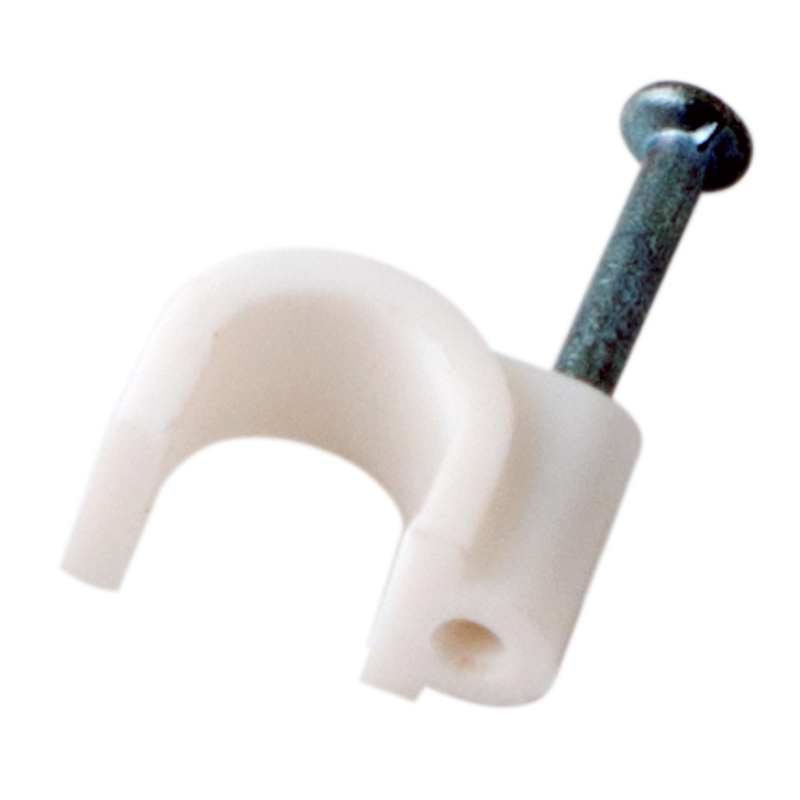 Круглый крепеж 7 мм с гвоздем предназначен для фиксации круглого кабеля к деревянной поверхности. Такой крепеж будет особенно полезен для использования на даче или в частном деревянном доме.