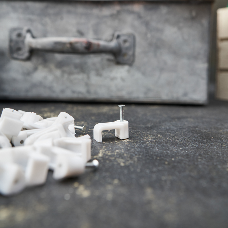 Плоский крепеж 12х6 мм с гвоздем предназначен для фиксации плоского кабеля к деревянной поверхности. Такой крепеж будет особенно полезен для использования на даче или в частном деревянном доме.