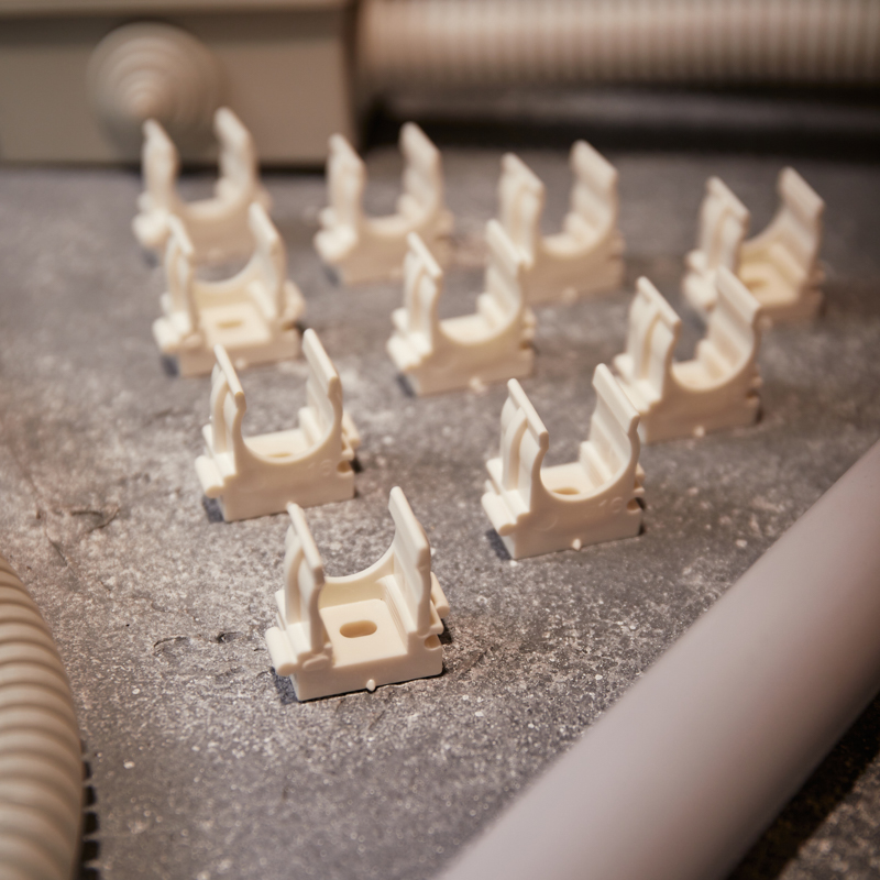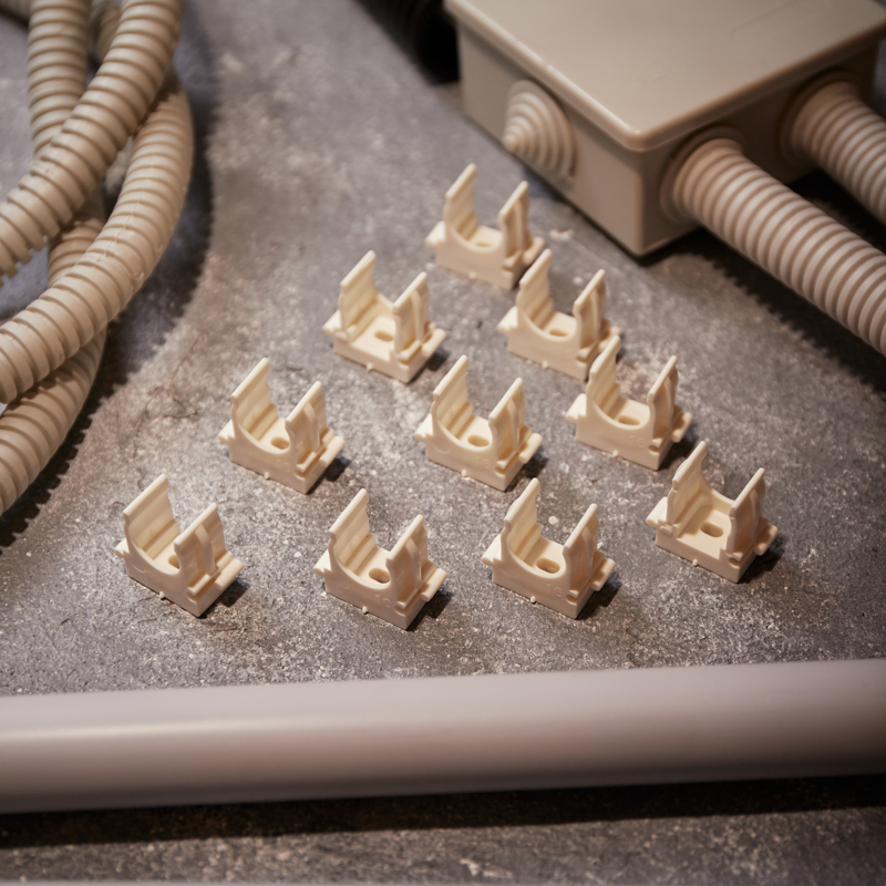 Изделие оснащено фиксаторами типа "шип-паз": при установке возможно соединять крепежи-клипсы различных диаметров.