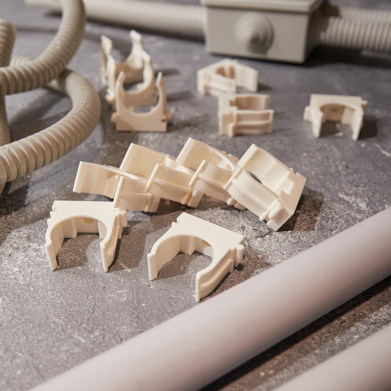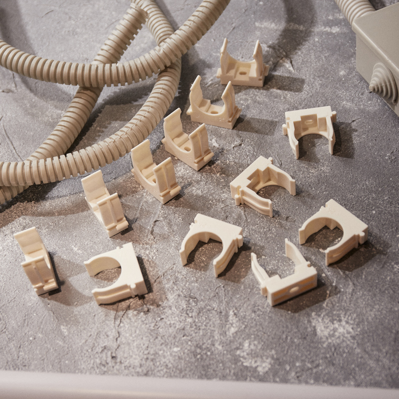 Изделие оснащено фиксаторами типа "шип-паз": при установке возможно соединять крепежи-клипсы различных диаметров.