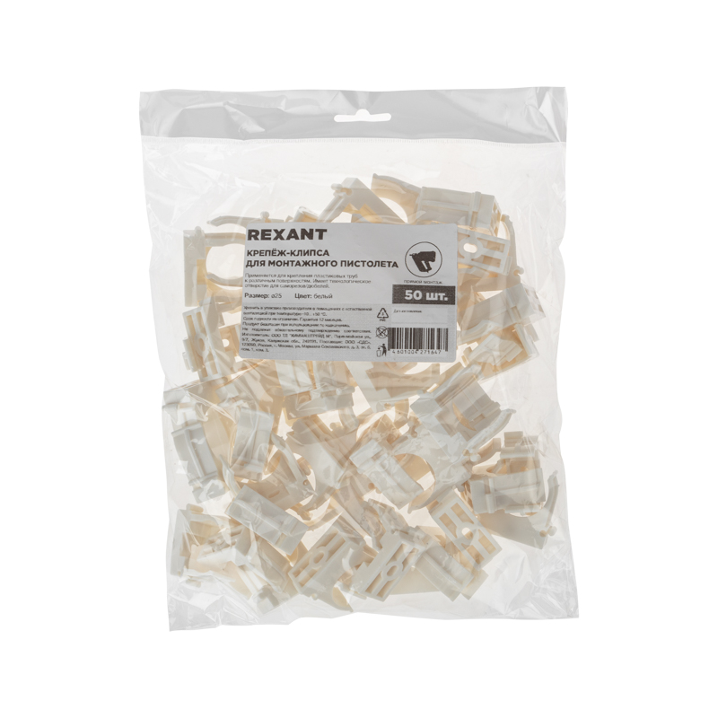 Крепеж-клипса для монтажного пистолета Ø 25 мм, белая (50 шт/уп) REXANT