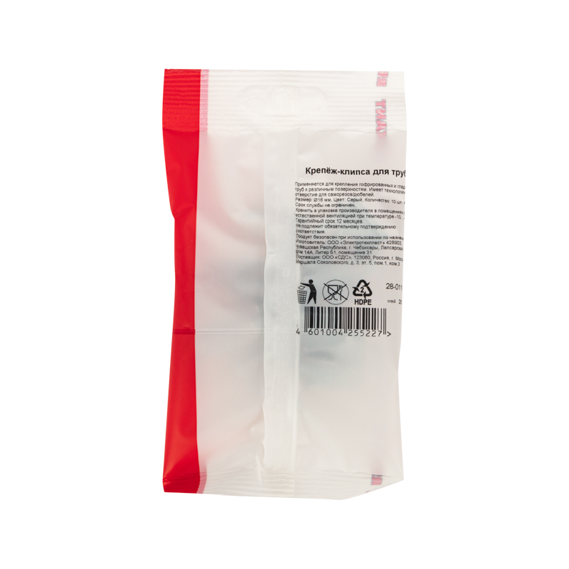 Крепеж-клипса для трубы ø16мм серая (10 шт/уп) REXANT