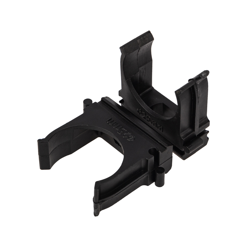Оптимальная форма клипсы с грамотно расположенными ребрами жесткости обеспечивают надежный захват трубы и достаточную жесткость удержания в течении длительного времени.