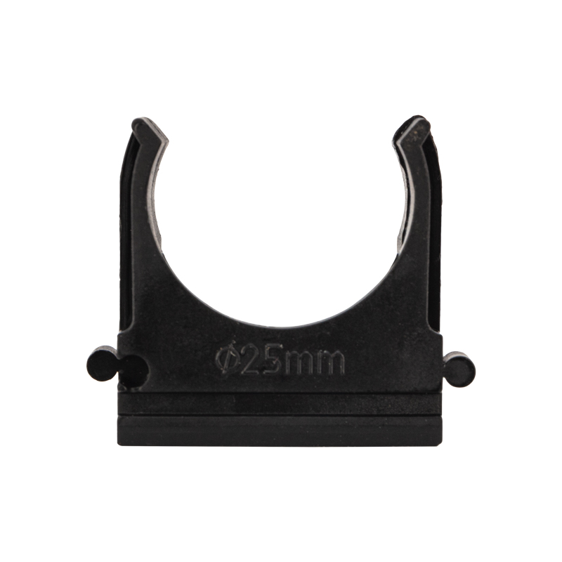 Крепеж-клипса применяется для крепления гофрированных и гладких труб к различным поверхностям. Имеет технологическое отверстие для саморезов/дюбелей.