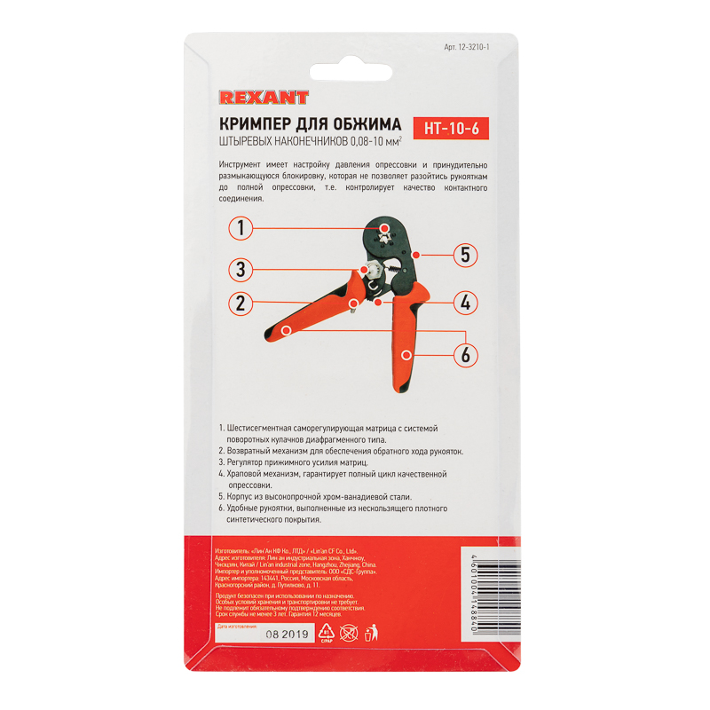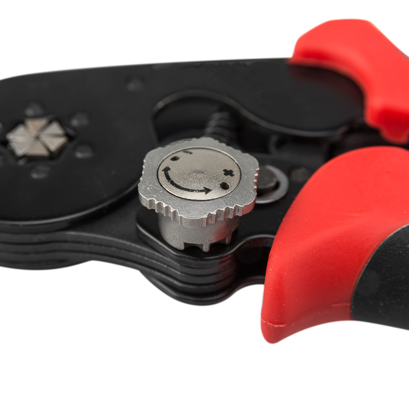 Корпус кримпера изготовлен из высокопрочной закаленной инструментальной стали с воронением, благодаря чему устойчив к механическим воздействиям и имеет продолжительный срок службы. Шестисегментная саморегулирующаяся матрица с системой поворотных кулачков диафрагменного типа выполняет гексагональный профиль обжима, обеспечивая равномерное распределение силы обжима. Есть возможность регулировать давление опрессовки. Инструмент дополнен регулятором прижимного усилия с 6 положениями. Храповой механизм производит полный цикл качественной опрессовки. Двухкомпонентные защитные рукоятки выполнены из плотного нескользящего синтетического материала, который делает работу с инструментом легкой и приятной.
