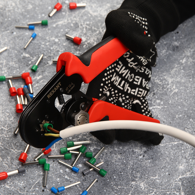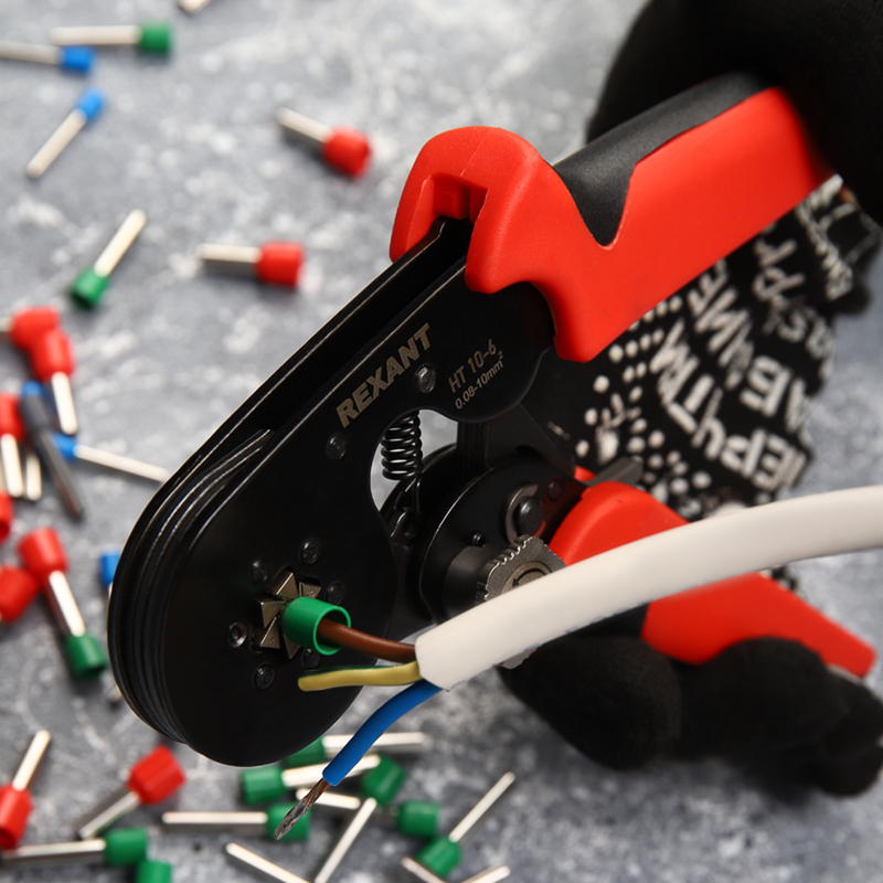 Кримпер HT-10-6 предназначен для обжима штыревых наконечников сечением 0,08–10 мм².