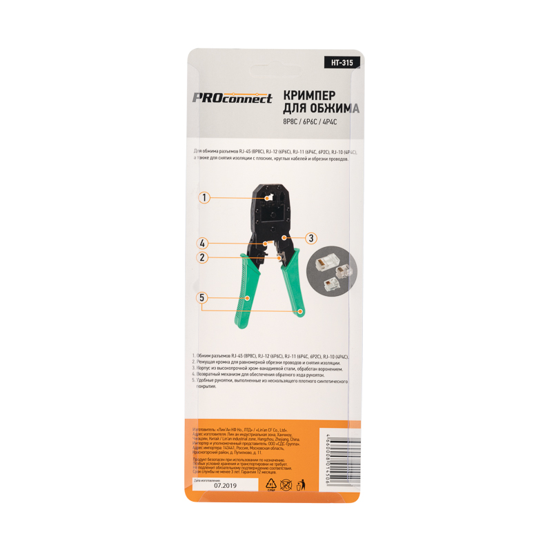 Корпус кримпера изготовлен из высокопрочной хром-ванадиевой стали с воронением, благодаря чему устойчив к механическим воздействиям и имеет продолжительный срок службы. Обладает дополнительными функциями обрезки проводов и снятия изоляции с плоских и круглых кабелей. Оснащен возвратным механизмом, который обеспечивает обратный ход рукояток и упрощает процесс работы с инструментом. Однокомпонентные защитные рукоятки выполнены из плотного нескользящего синтетического материала, который делает работу с инструментом легкой и приятной.