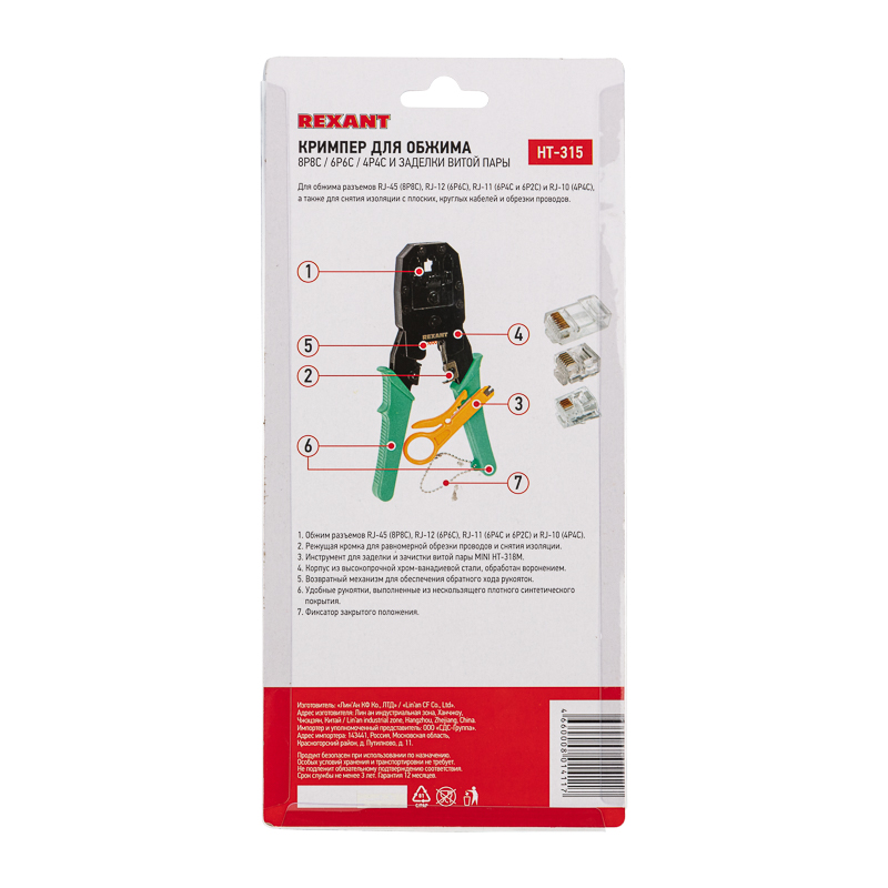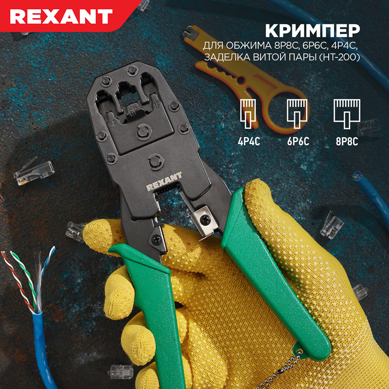 Кримпер HT-200 предназначен для обжима компьютерных и телефонных разъемов RJ-45, RJ-12, RJ-11, RJ-10, а также для заделки витой пары.