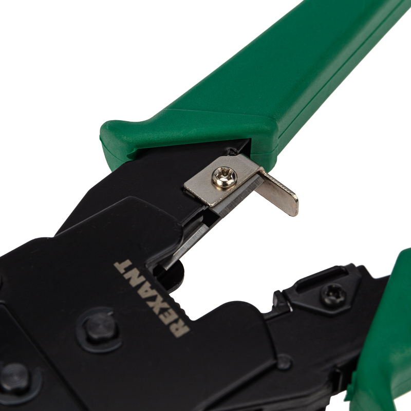 Корпус кримпера изготовлен из высокопрочной хром-ванадиевой стали с воронением, благодаря чему устойчив к механическим воздействиям и имеет продолжительный срок службы. Обладает дополнительными функциями обрезки проводов и снятия изоляции с плоских и круглых кабелей. Оснащен возвратным механизмом, который обеспечивает обратный ход рукояток и упрощает процесс работы с инструментом. Однокомпонентные защитные рукоятки выполнены из плотного нескользящего синтетического материала, который делает работу с инструментом легкой и приятной.