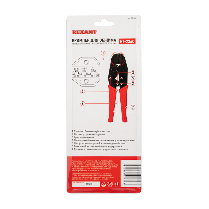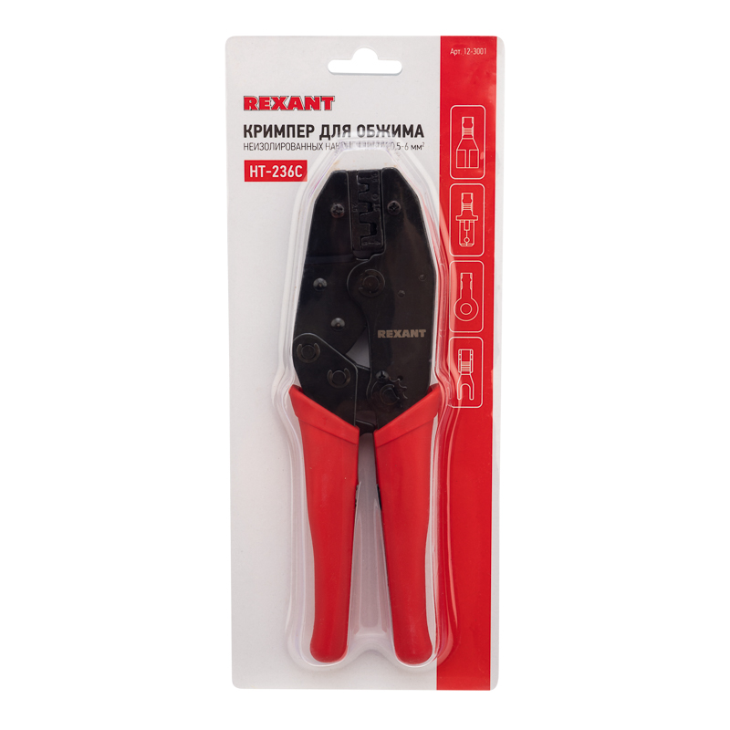 Кримпер HT-236C предназначен для обжима неизолированных клемм сечением 0,5–6 мм².