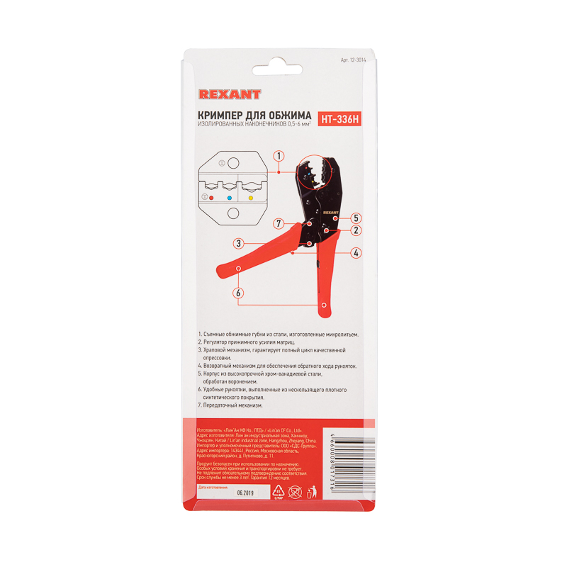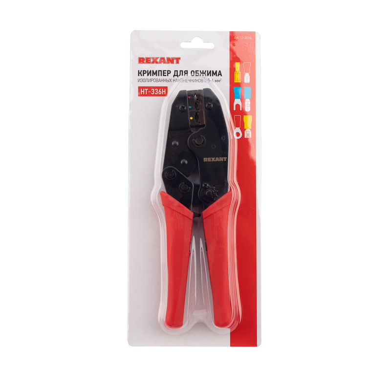 Кримпер HT-336H разработан для профессионального обжима изолированных наконечников и клемм сечения 0,5-6 мм².